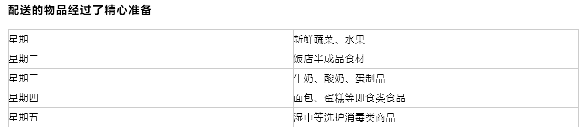 按計劃,從2月3日開始,分別由文峰集團下屬的文峰千家惠、 文峰飯店和南通大飯店每天按品類配送食材。以五天為一個周期,連續(xù)配送4個星期,到2月28日配送完畢。